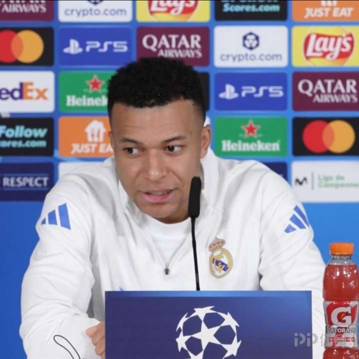 皇家马德里前锋姆巴佩出席对阵摩纳哥的赛前发布会。