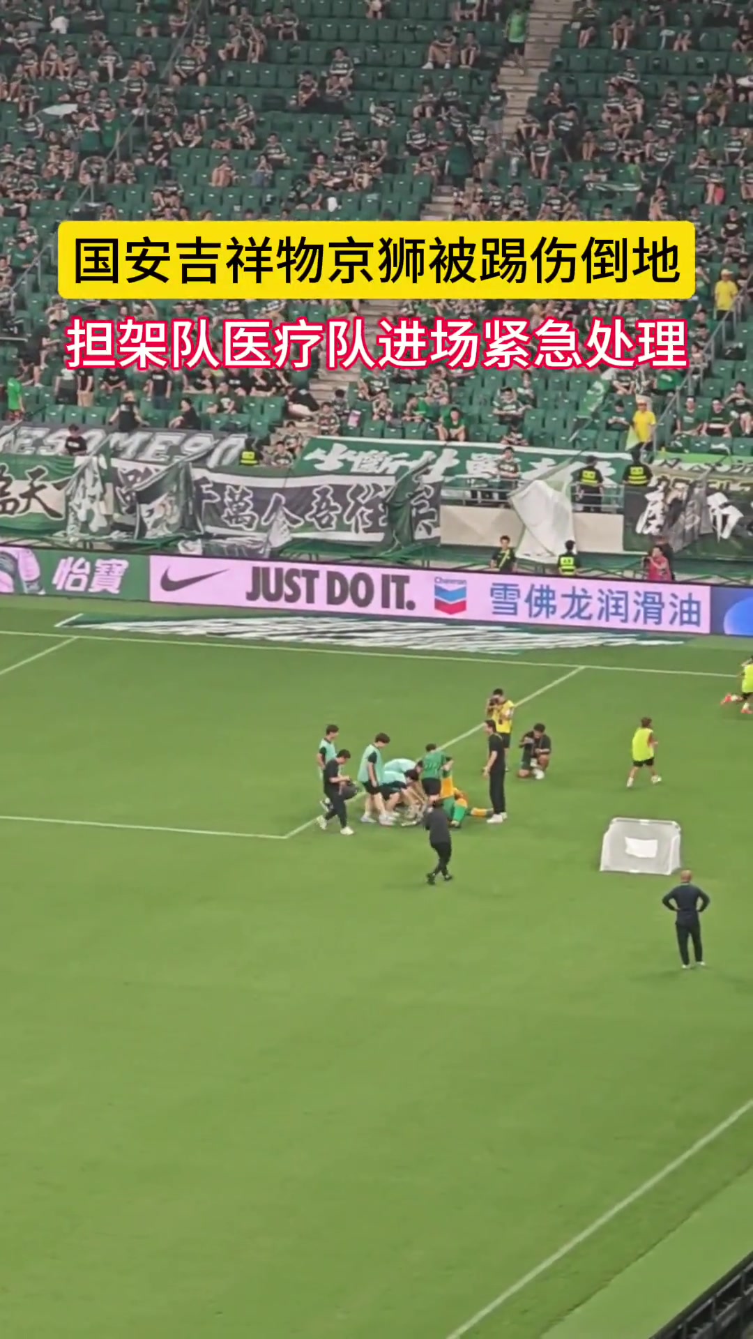 略尬当年国安吉祥物京狮被踢倒地受伤担架队进场紧急进场