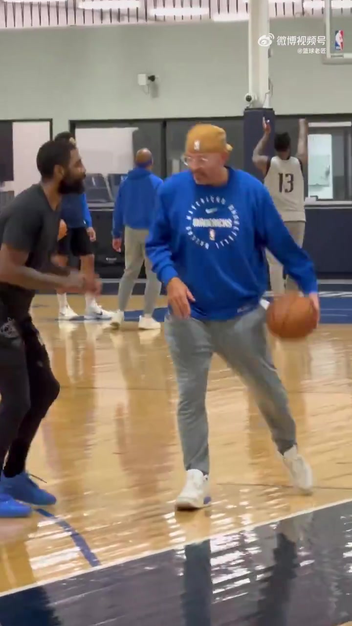两个历史级控卫基德在训练中推土机背打欧文满满的都是欢乐