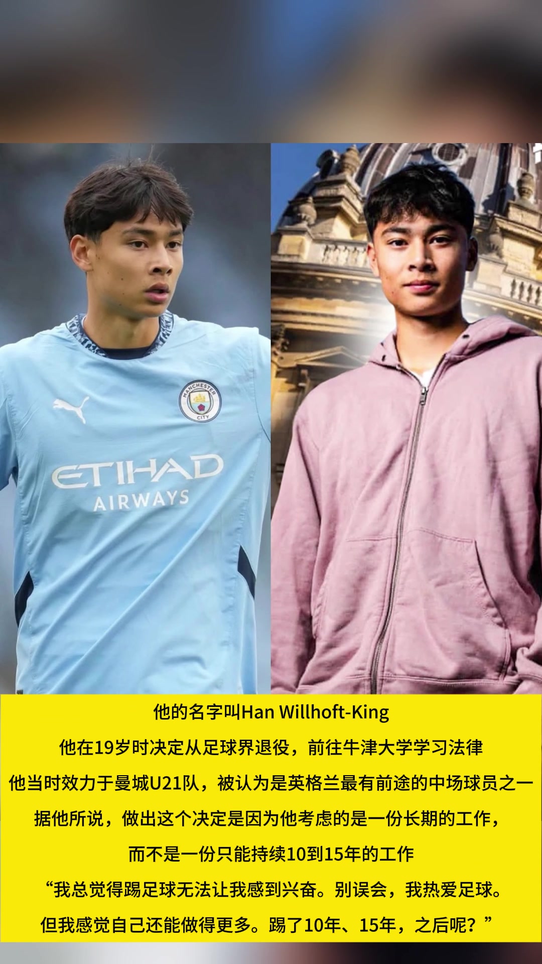 英格兰19岁华裔小将宣布退役踢了10年15年之后做啥呢