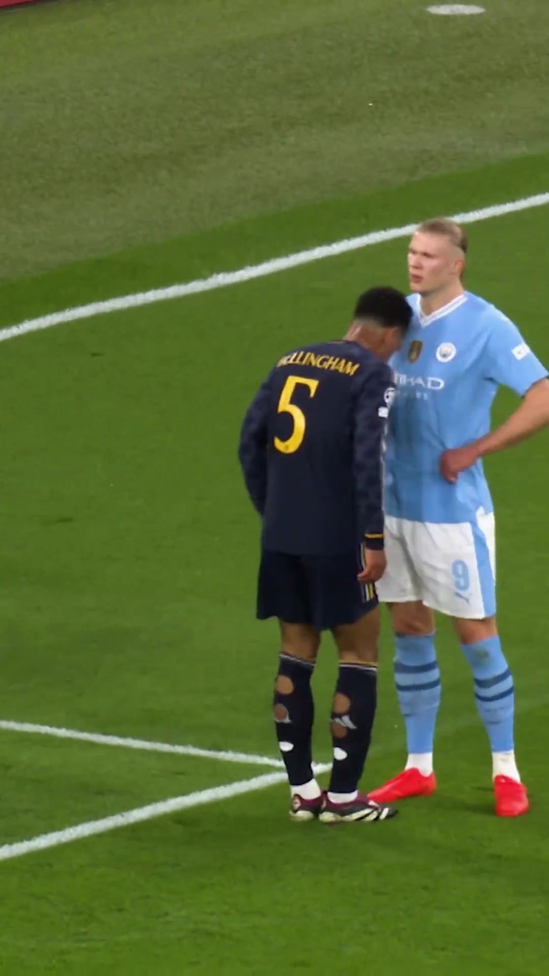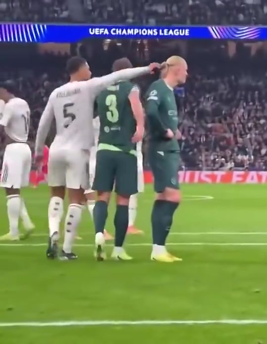 哈兰德罚点前贝林厄姆想碰他头发