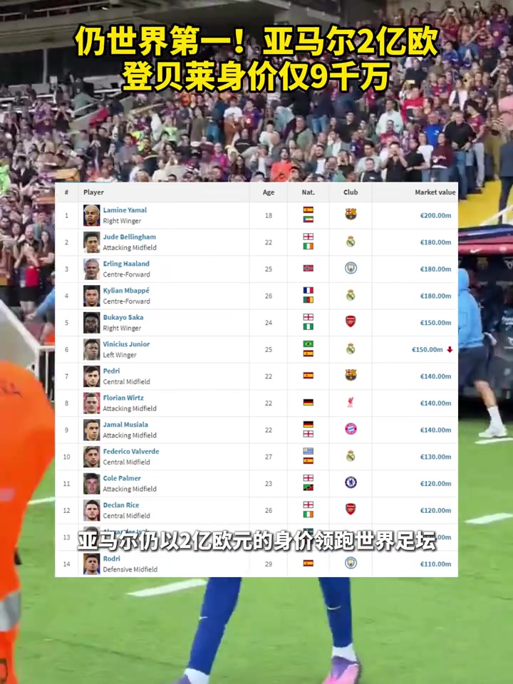 身价合理吗亚马尔领衔世界足坛18人身价破亿