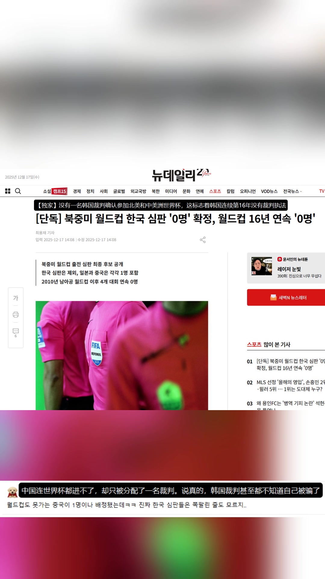 韩国裁判无人执法世界杯韩网友种族歧视,连中国裁判都可以参加