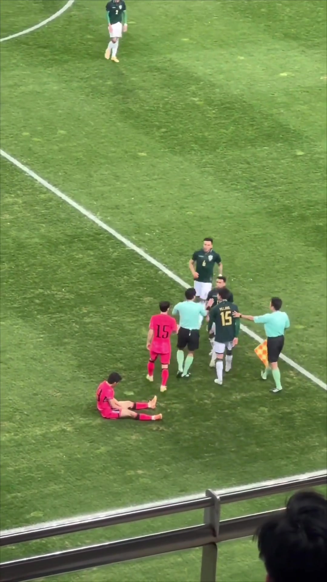 马宁控场李刚仁受伤倒地被对手强行拉拽马宁果断出牌制止