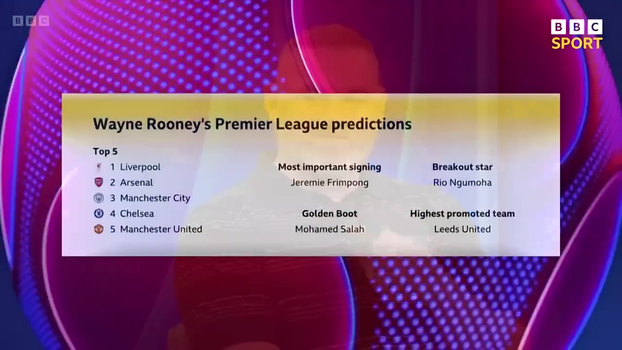 鲁尼预测新赛季英超红军夺冠阿森纳第2曼联第5萨拉赫金靴