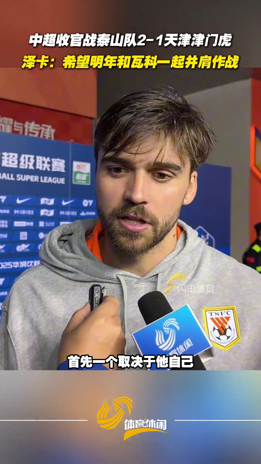 泰山队主场收官战战胜津门虎泽卡希望明年和瓦科一起并肩战斗