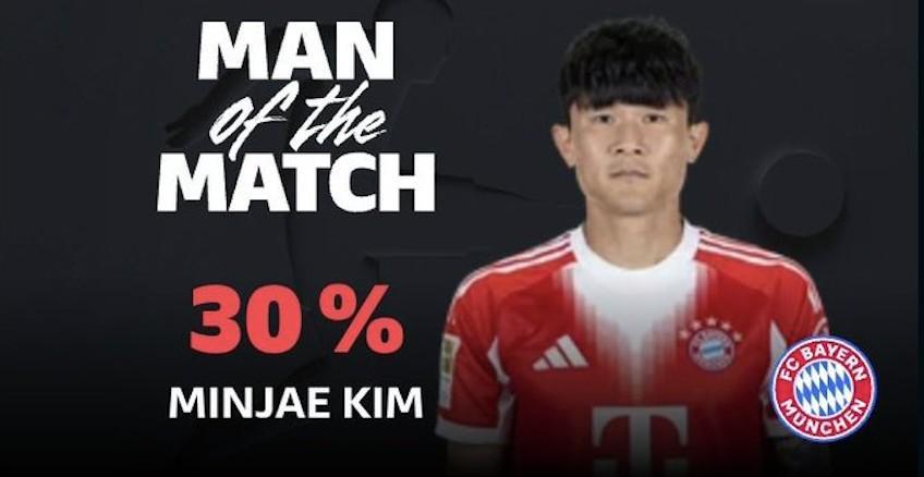 攻防俱佳,金玟哉当选科隆vs拜仁全场最佳球员