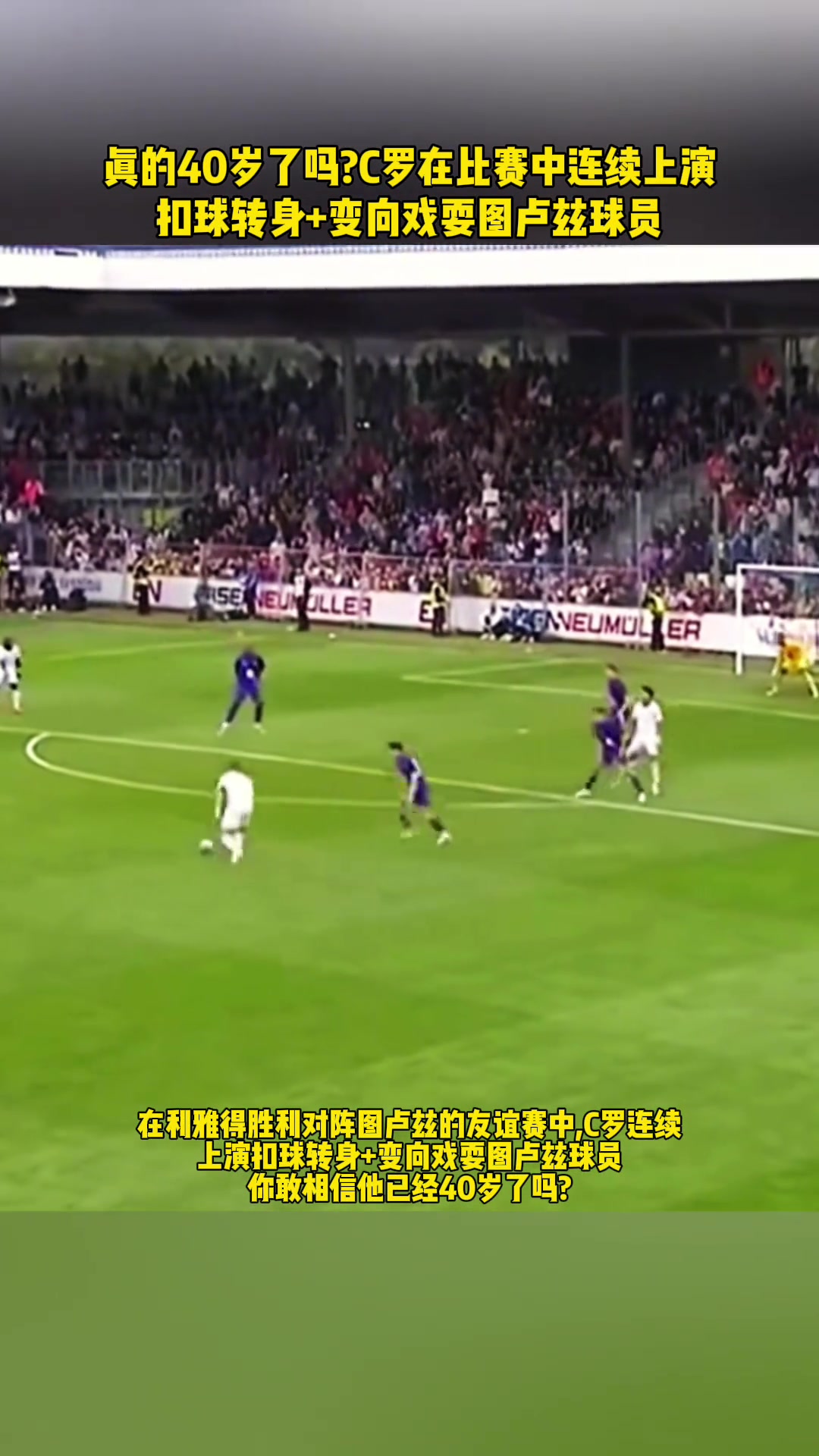 真的40岁了比赛中C罗连续扣球转身变向戏耍法甲球员