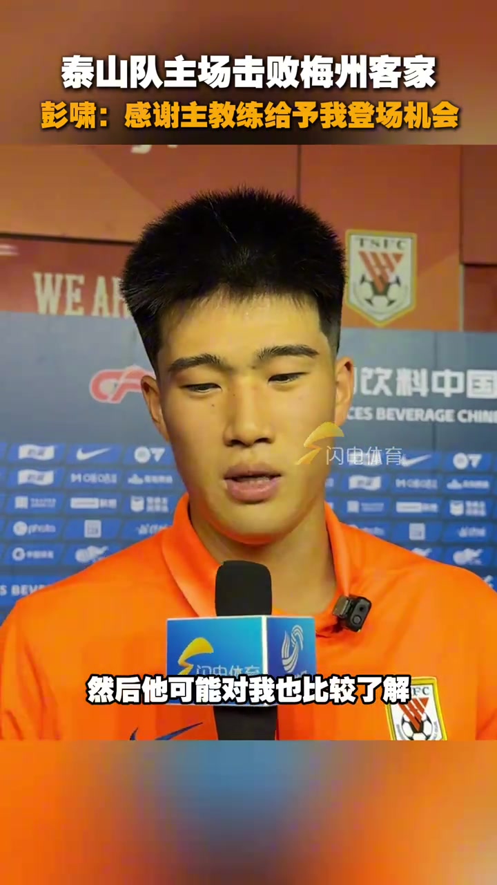 泰山队主场击败梅州小将彭啸赛后感谢主教练