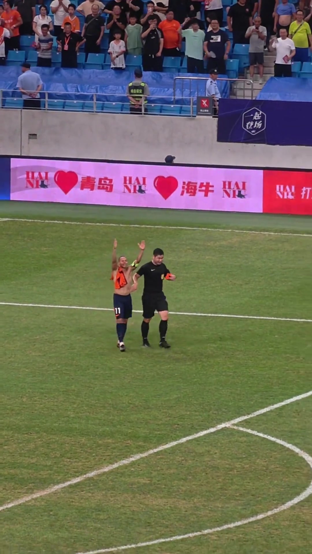 脱衣服一红一黄中超裁判朝着脱衣服的海牛队长韦斯利出示红牌啊