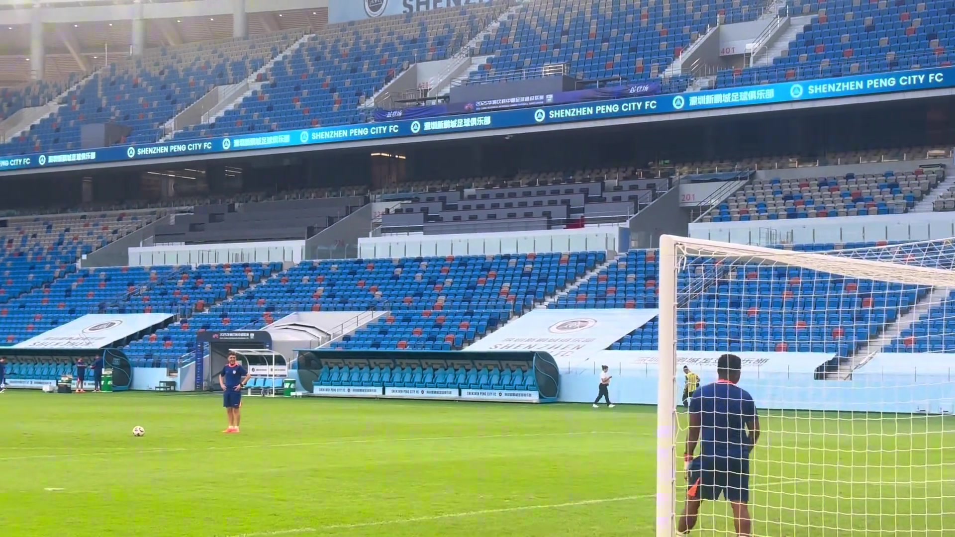 主教练正在热身泰山队赛前射门训练韩鹏指导也来了一脚