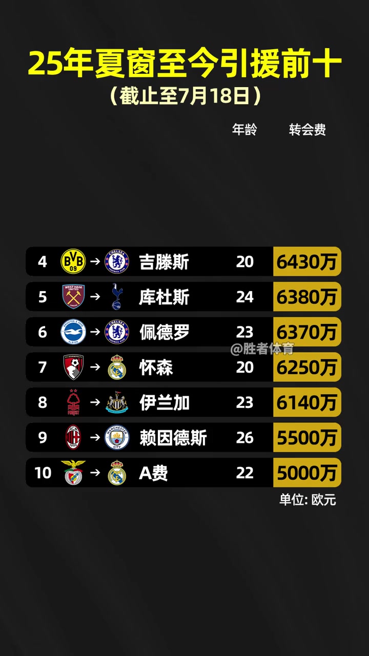 英超太豪横了25年夏窗至今引援前十英超占8席