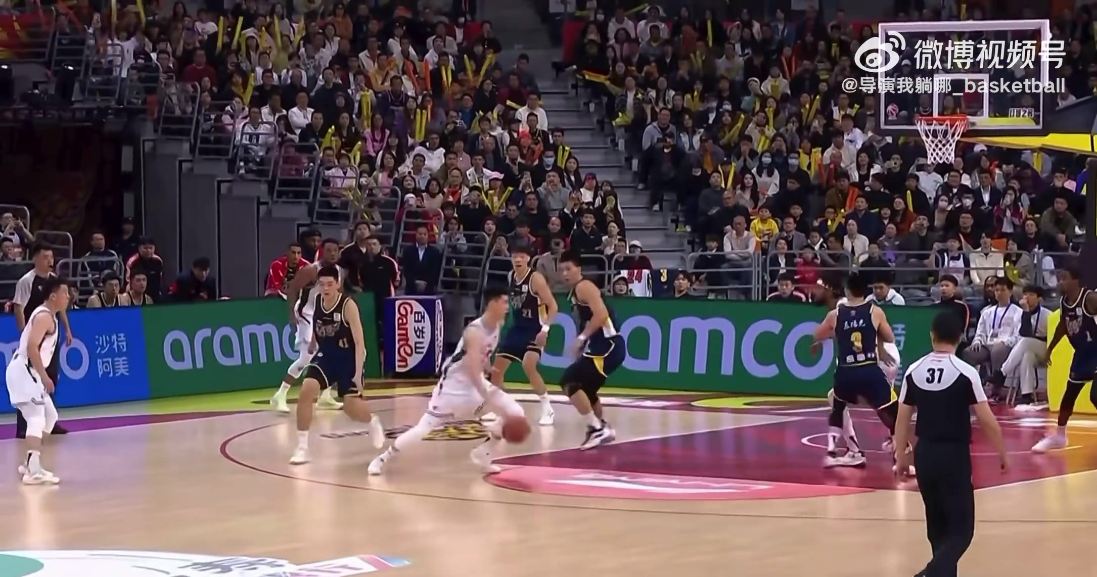这动作危险邬挺嘉劈叉投篮将扑防的徐杰绊出场外裁判未吹违体