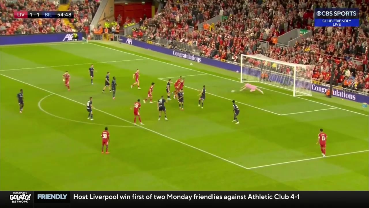 努涅斯禁区内送助攻埃利奥特爆射破门利物浦4-0领先毕尔巴鄂