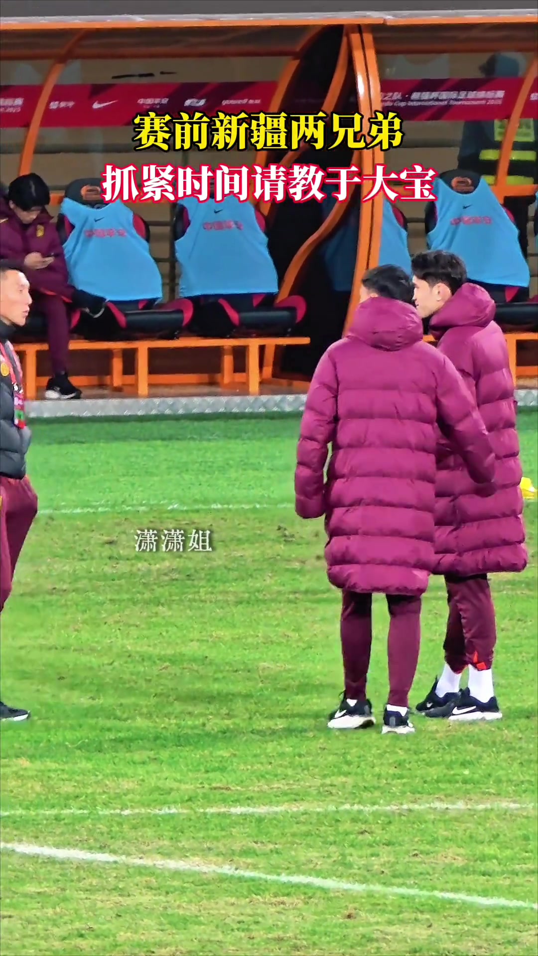 博主实拍熊猫杯赛前U22国足新疆两兄弟抓紧时间请教于大宝