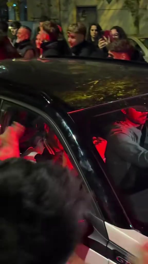 德比战胜塞维利亚安东尼坐车离开球场时与贝蒂斯球迷互动庆祝