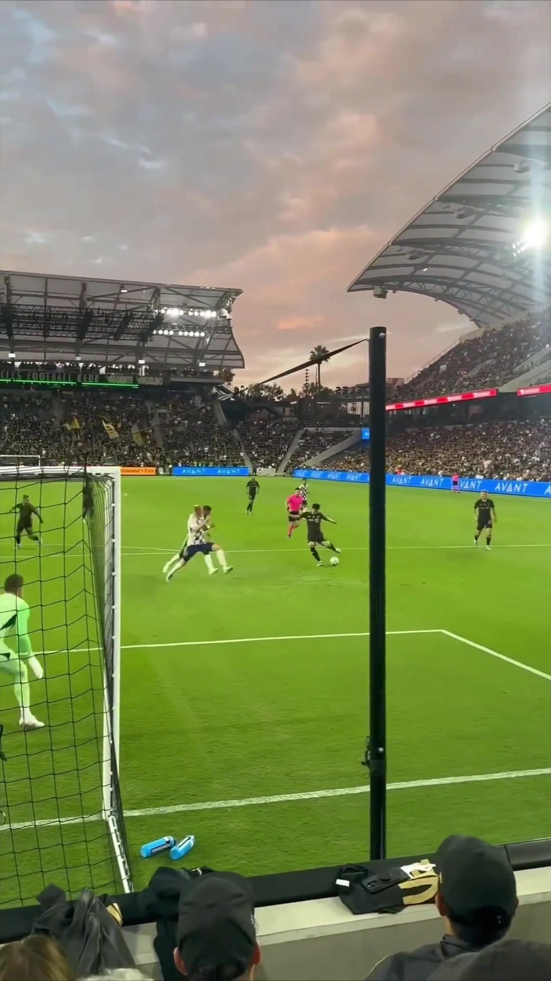 球门近距离视角感受孙兴慜射门的力量和技术