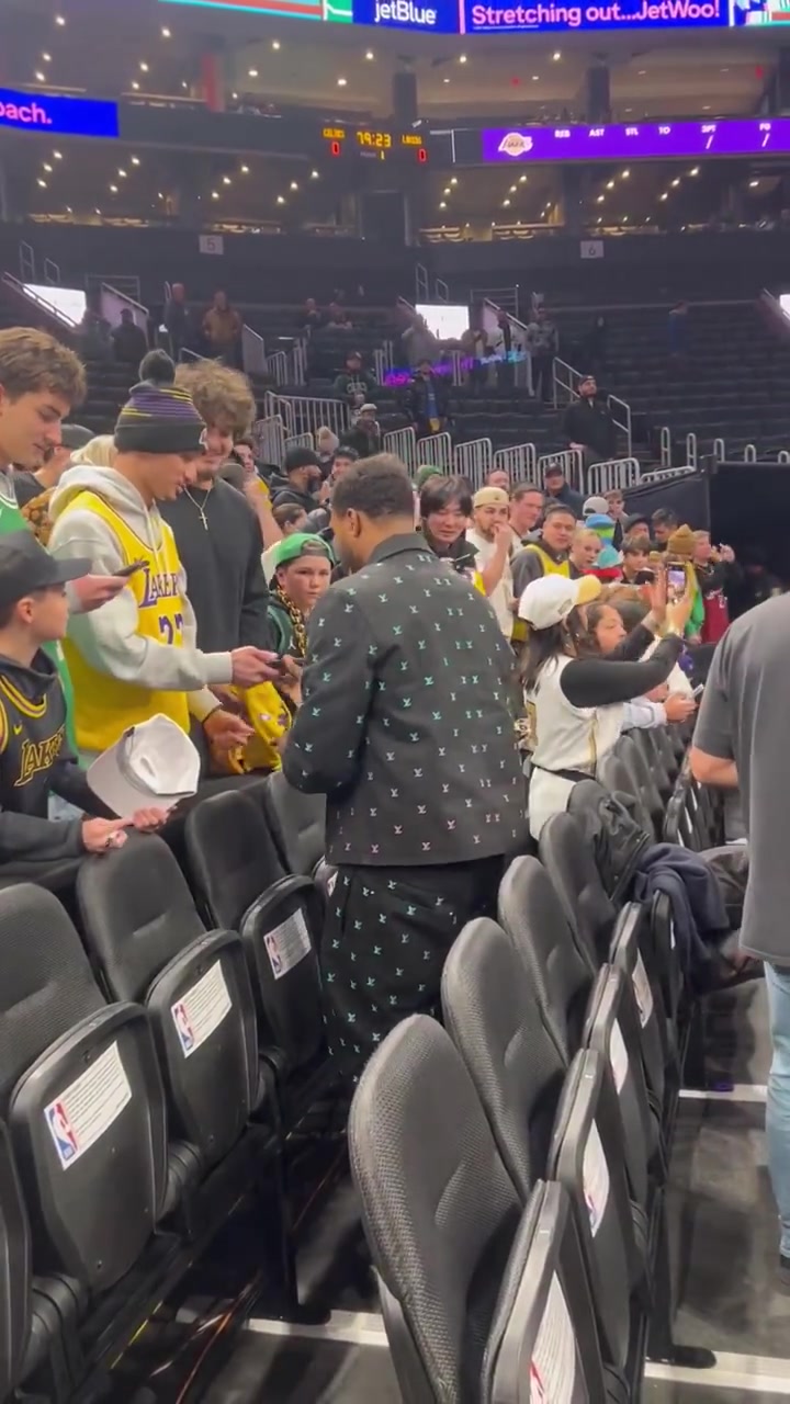 曾经的凯尔特人队长斯玛特重返北岸花园赛前给粉丝签名